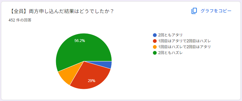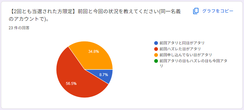 バレともプレミアム先行抽選の当落結果を受けて募集したアンケート結果になります。