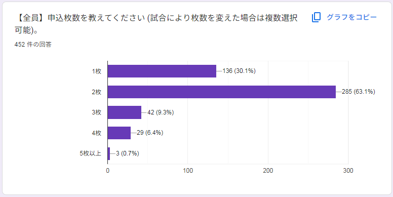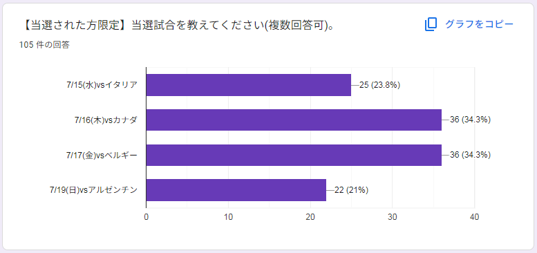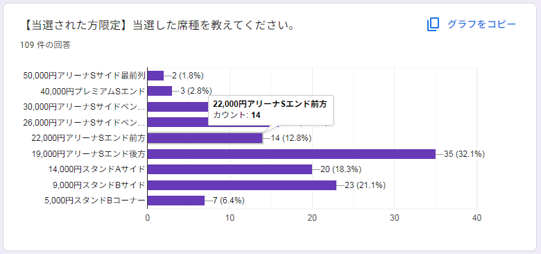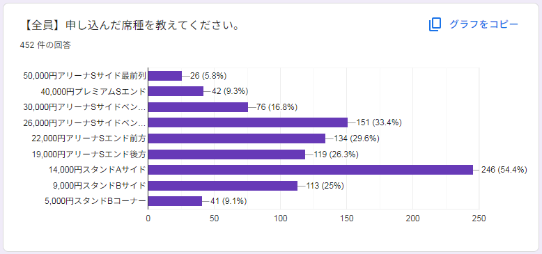 バレともプレミアム会員で男子チケットを前回(プレミアム会員先行)と今回(有料全会員先行)の2回両方とも申し込んだ方限定で行ったアンケート結果です。大変お待たせいたしましたm(_ _)m